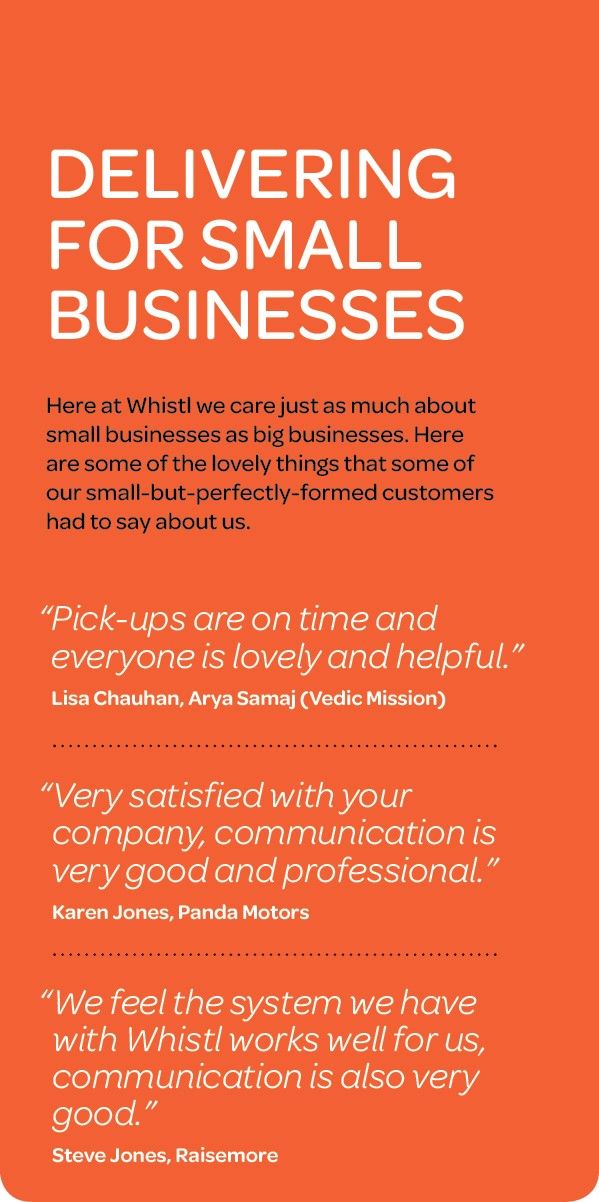 Here at Parcelhub - part of the Whistl Group we support around 2,000 SMEs with their postal and delivery requirements. Out of the 4 billion items sent through our network every year, over 142 million are sent by SME customers across a range of sectors including retail, entertainment, leisure, charities and financial, and we’re pleased to say that 86% are satisfied or very satisfied in doing business with us!